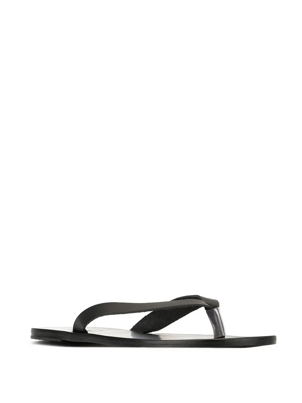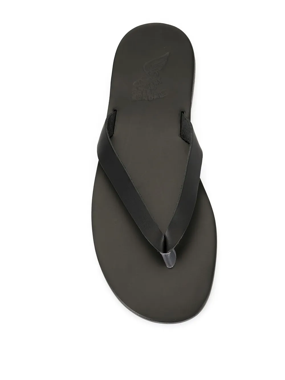 Black calf leather Hero slides from Ancient Greek Sandals featuring a branded insole and a flat sole. POSITIVELY CONSCIOUS: Ancient Greek Sandals scores 3 out 5 by independent ethical brand rating agency Good On You. It manufactures locally to reduce its carbon footprint, uses low impact non-toxic dyes and visits suppliers regularly in its supply chain.