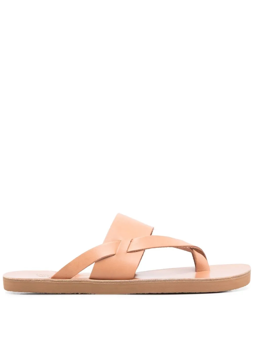 Medium beige leather Zinon leather flip-flops from ANCIENT GREEK SANDALS featuring round toe, slip-on style, branded leather insole, flat rubber sole and toe loop. POSITIVELY CONSCIOUS: We’ve partnered with Good On You — an ethical agency that rates how sustainably brands perform across various people, planet and animal welfare criteria. This product comes from a Conscious brand that performs well in relation to their impact on people, which ensures good working conditions in the supply chain..