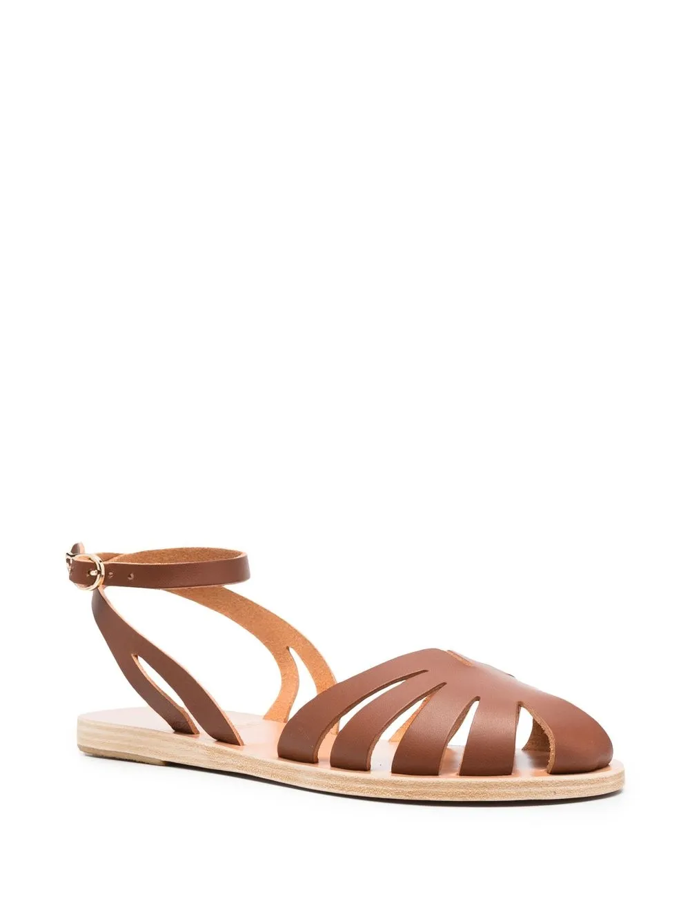 Aella flat sandals from ANCIENT GREEK SANDALS featuring cedar brown, calf leather, branded insole, round toe, buckle-fastening ankle strap and flat rubber sole. Conscious: We’ve partnered with Good On You – an ethical agency that rates how sustainably brands perform. This item comes from a brand that performs well in relation to their impact on people, which ensures good working conditions in the supply chain..