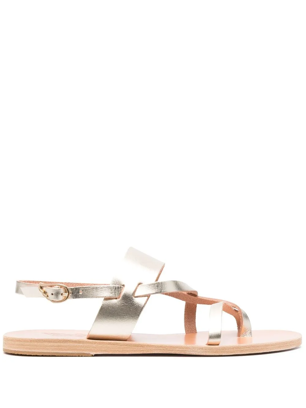 Alethea metallic-effect sandals from ANCIENT GREEK SANDALS featuring gold-tone, calf leather, metallic effect, branded insole, open toe, buckle-fastening ankle strap and flat rubber sole. Conscious: We’ve partnered with Good On You – an ethical agency that rates how sustainably brands perform. This item comes from a brand that performs well in relation to their impact on people, which ensures good working conditions in the supply chain..