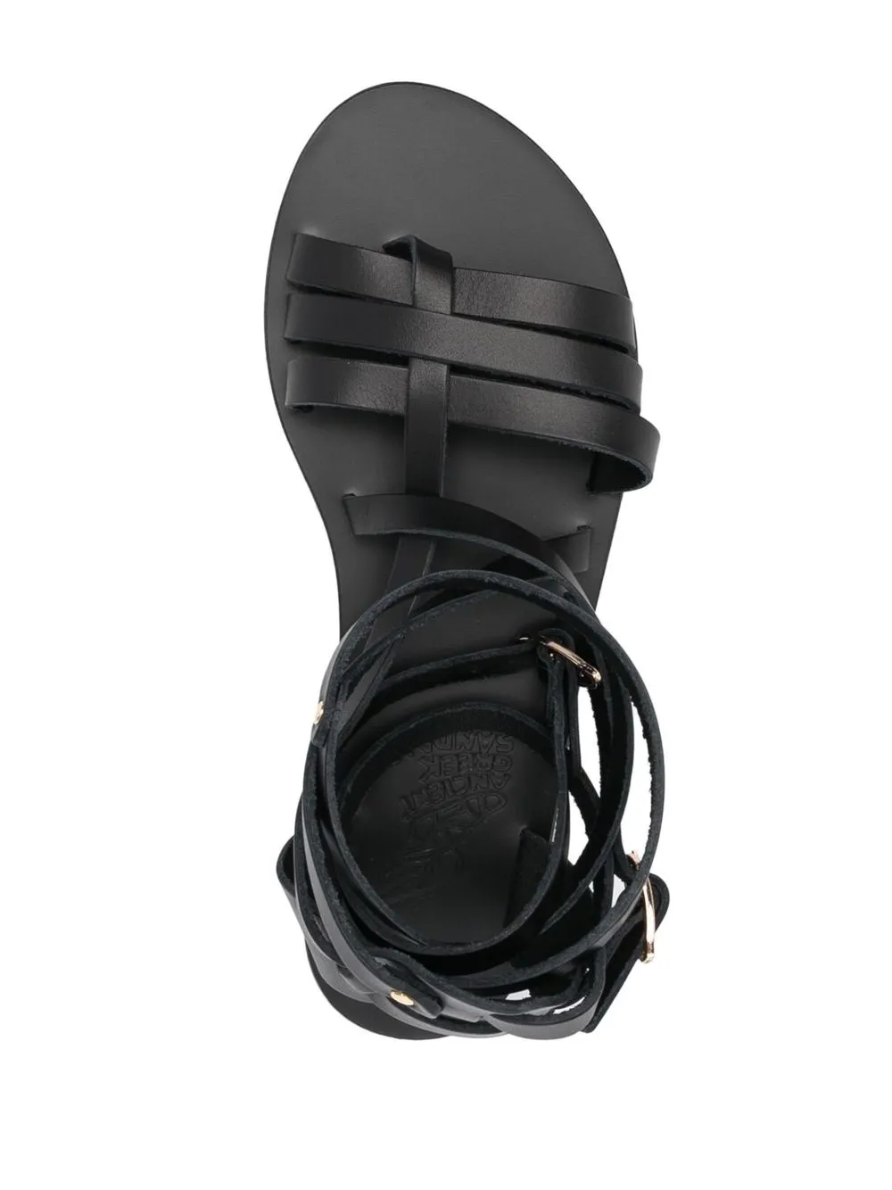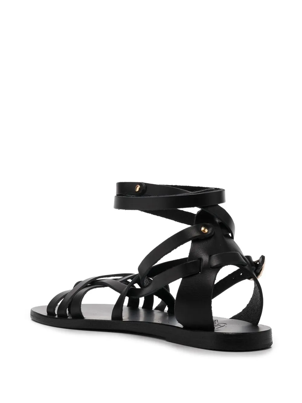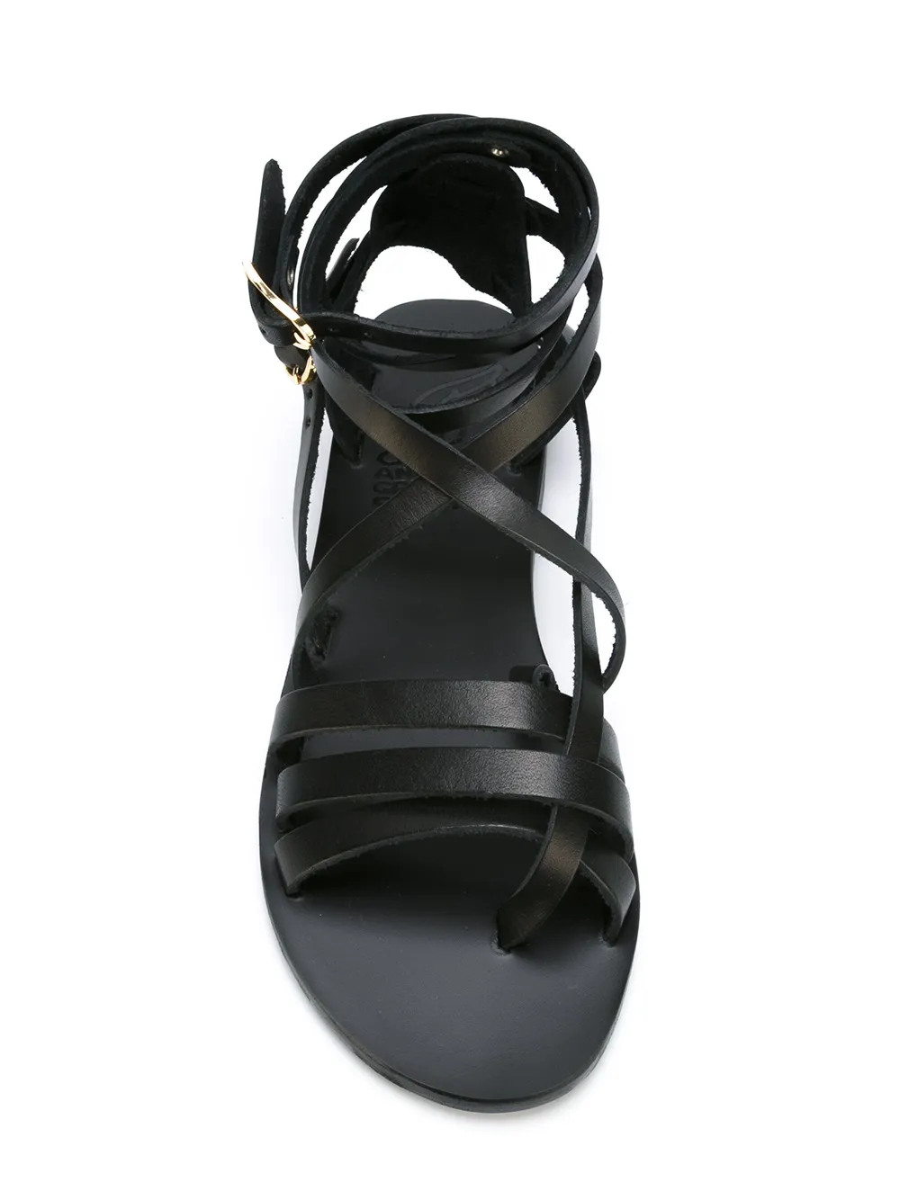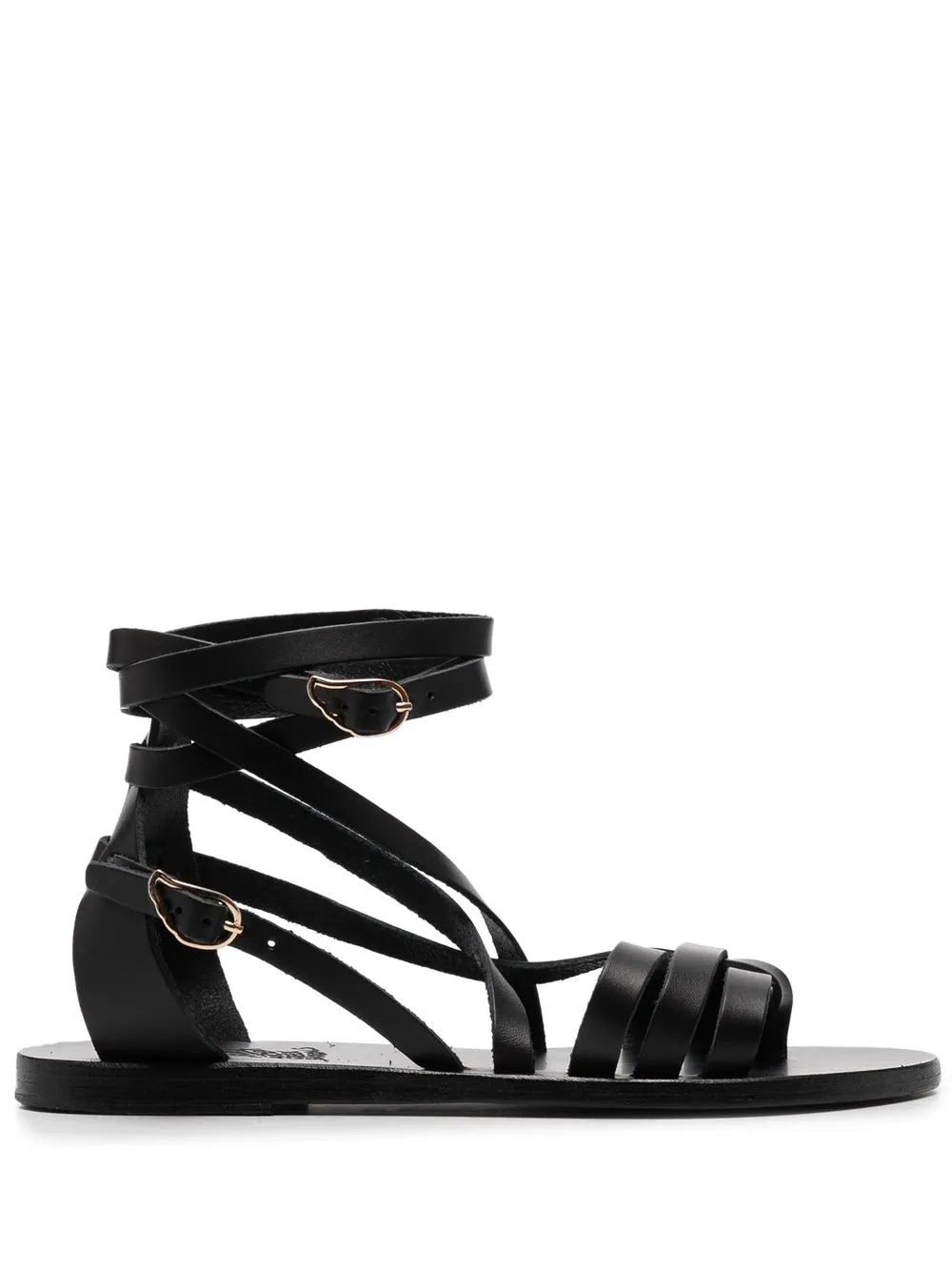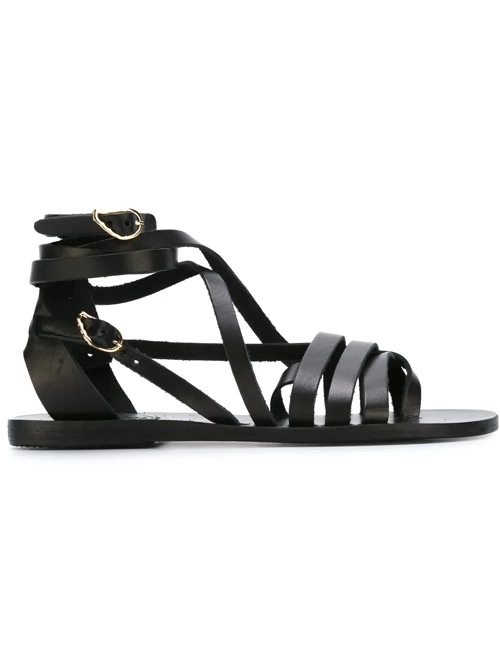 Black bos taurus and leather ‘Satira’ sandals from Ancient Greek Sandals. POSITIVELY CONSCIOUS: Ancient Greek Sandals scores 3 out 5 by independent ethical brand rating agency Good On You. It manufactures locally to reduce its carbon footprint, uses low impact non-toxic dyes and visits suppliers regularly in its supply chain.