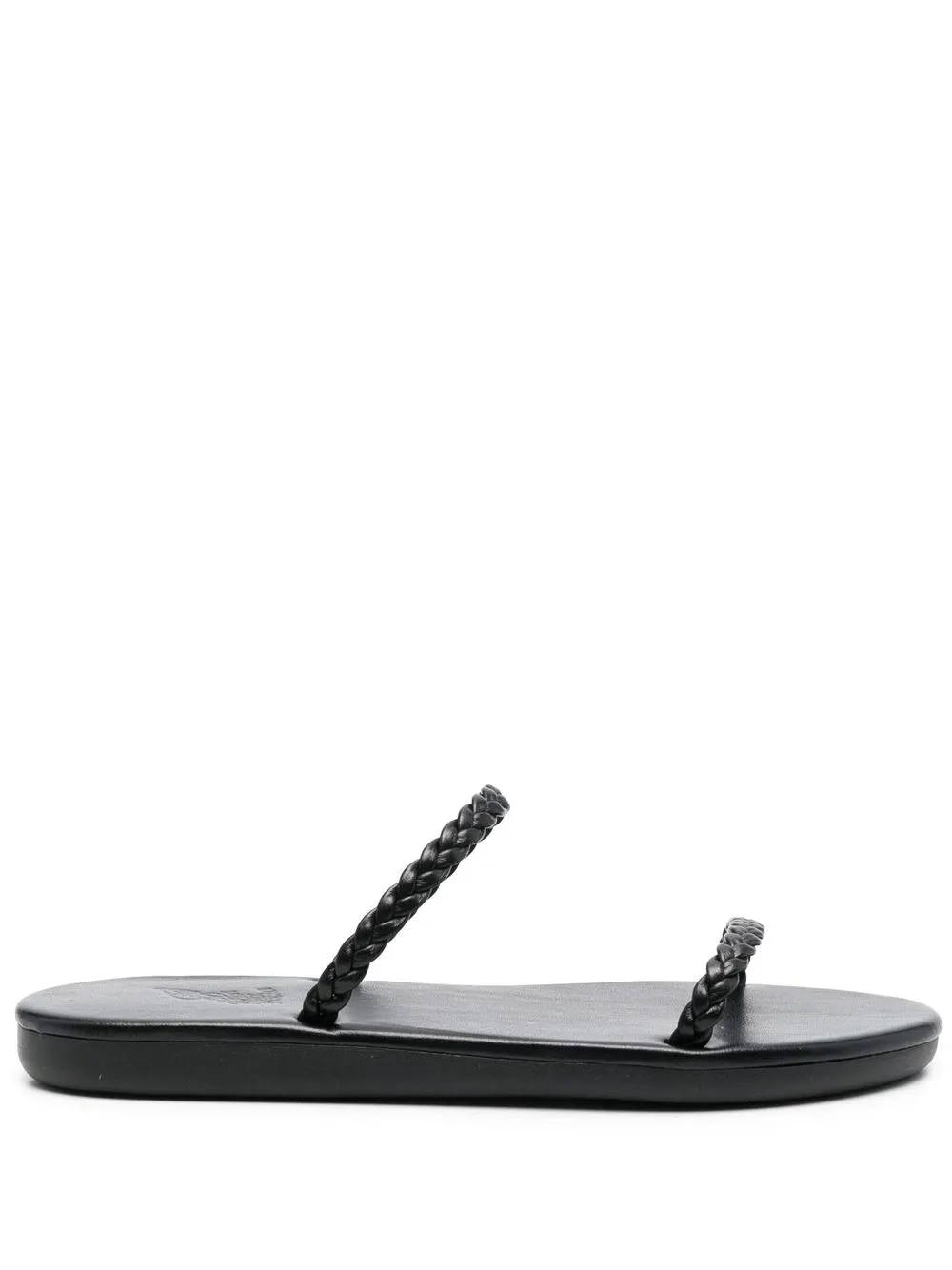 Aprilia braided-strap sandals from ANCIENT GREEK SANDALS featuring braided strap, crossover strap detail, open toe, flat rubber sole, black and calf leather. Conscious: We’ve partnered with Good On You – an ethical agency that rates how sustainably brands perform. This item comes from a brand that performs well in relation to their impact on people, which ensures good working conditions in the supply chain..