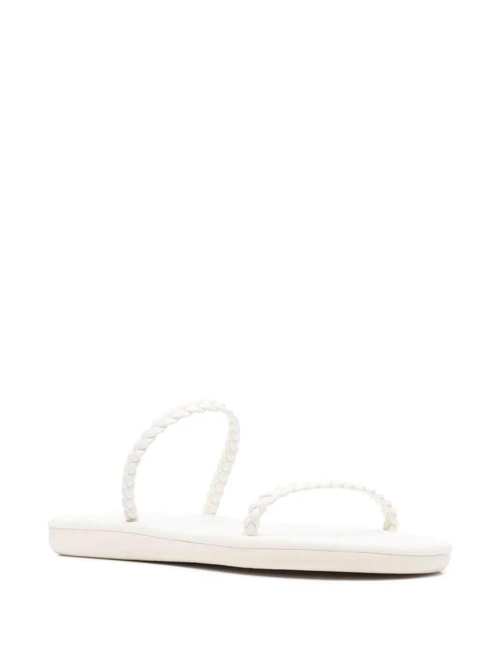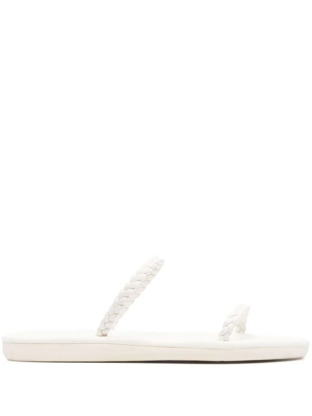 Aprilia braided-straps sandals from ANCIENT GREEK SANDALS featuring vanilla white, calf leather, double-strap design, slip-on style, round toe, flat sole, braided straps and POSITIVELY CONSCIOUS: We’ve partnered with Good On You — an ethical agency that rates how sustainably brands perform across various people, planet and animal welfare criteria. This product comes from a Conscious brand that performs well in relation to their impact on people, which ensures good working conditions in the supply chain..