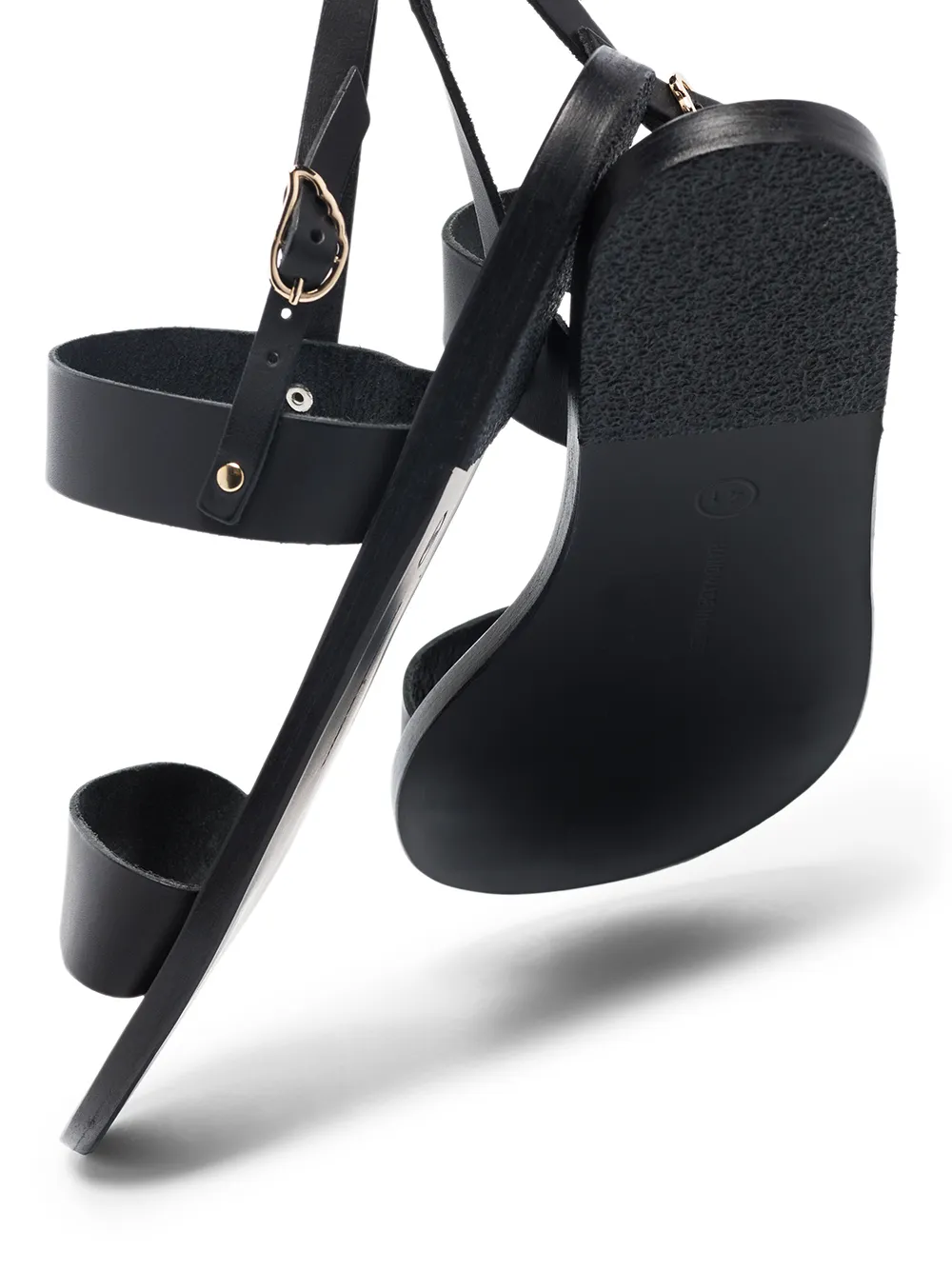 Black Clio Leather Sandals from Ancient Greek Sandals. POSITIVELY CONSCIOUS: Ancient Greek Sandals scores 3 out 5 by independent ethical brand rating agency Good On You. It manufactures locally to reduce its carbon footprint, uses low impact non-toxic dyes and visits suppliers regularly in its supply chain.