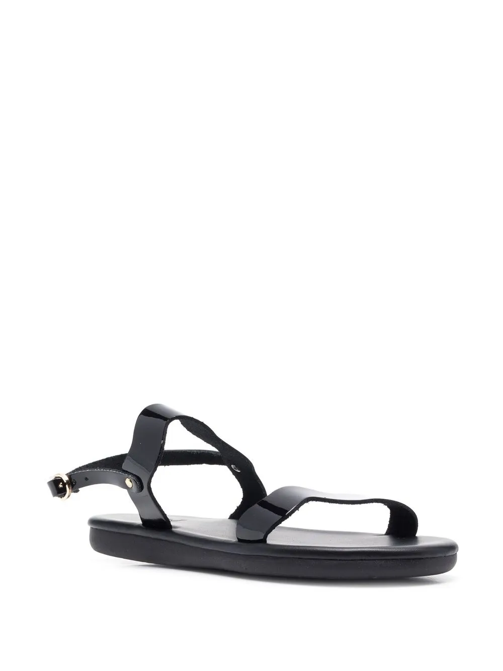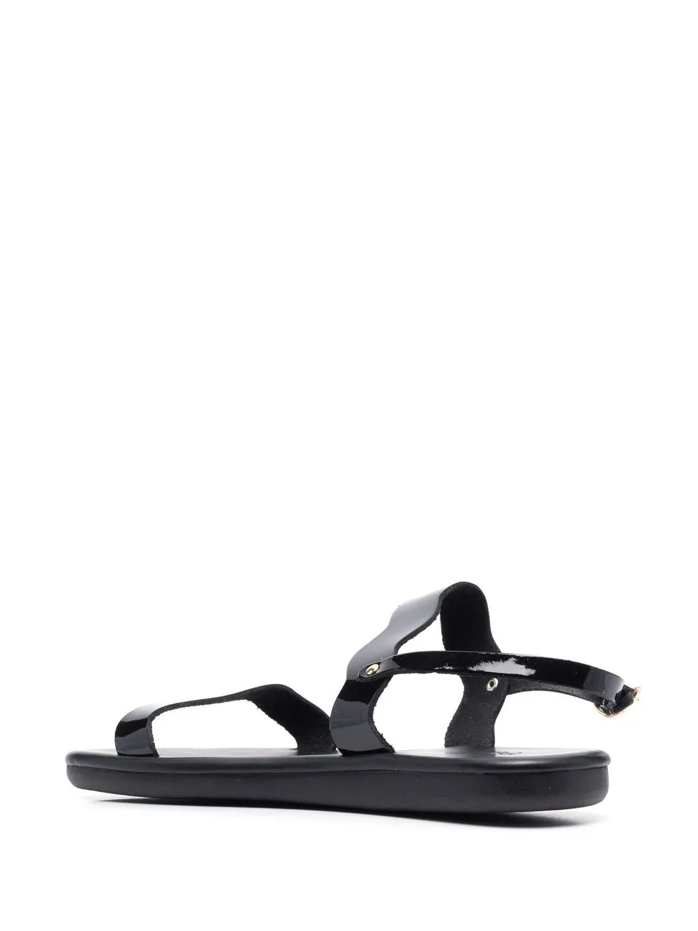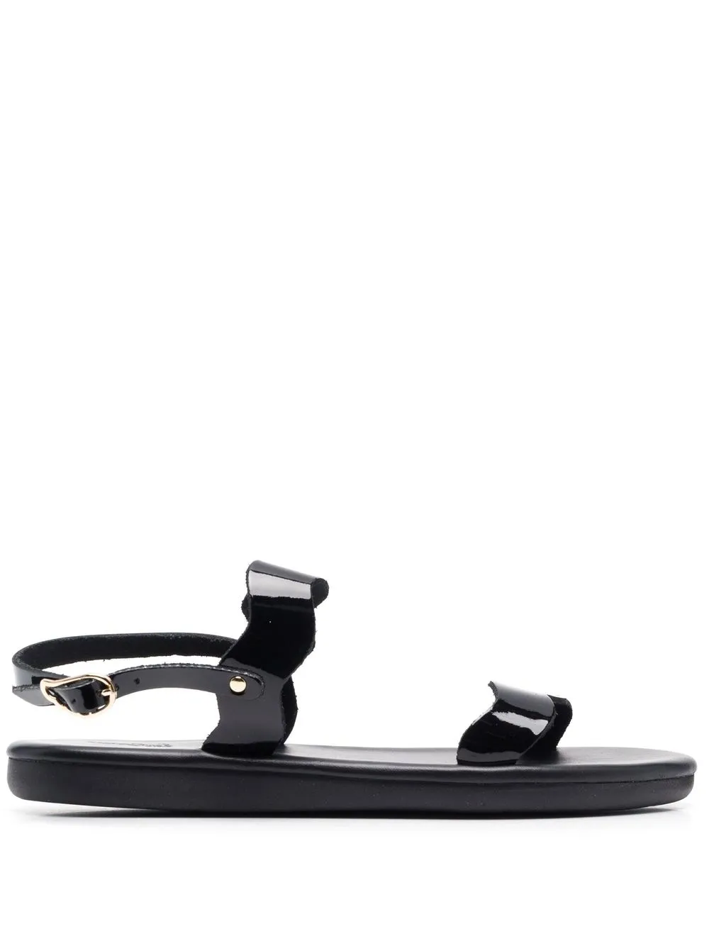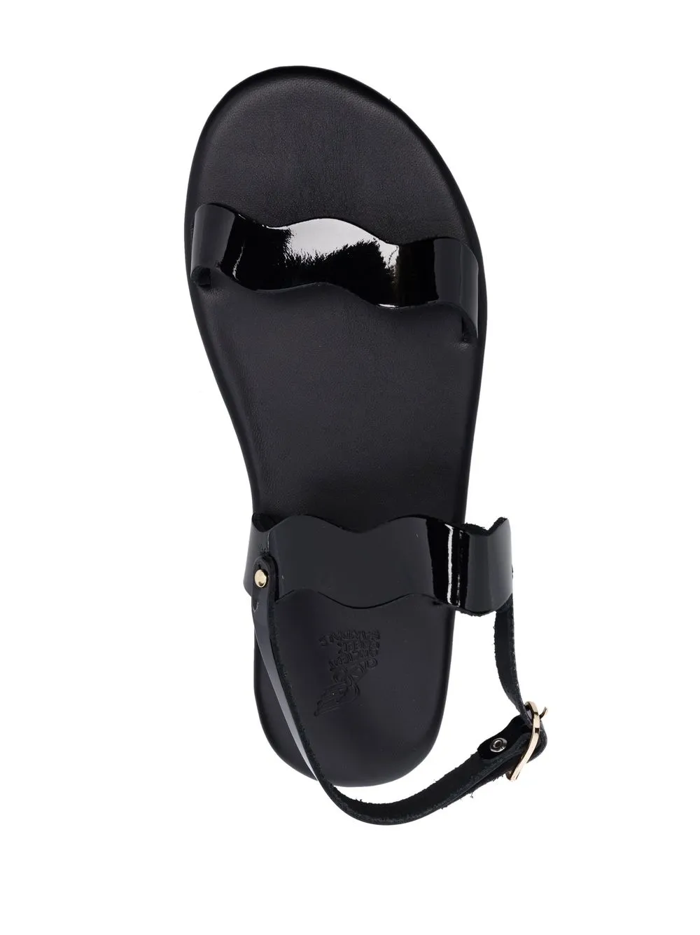 Calamos patent slingback sandals from ANCIENT GREEK SANDALS featuring black, calf leather, patent finish, scallop edge, buckle-fastening slingback strap and flat sole. Conscious: We’ve partnered with Good On You – an ethical agency that rates how sustainably brands perform. This item comes from a brand that performs well in relation to their impact on people, which ensures good working conditions in the supply chain..