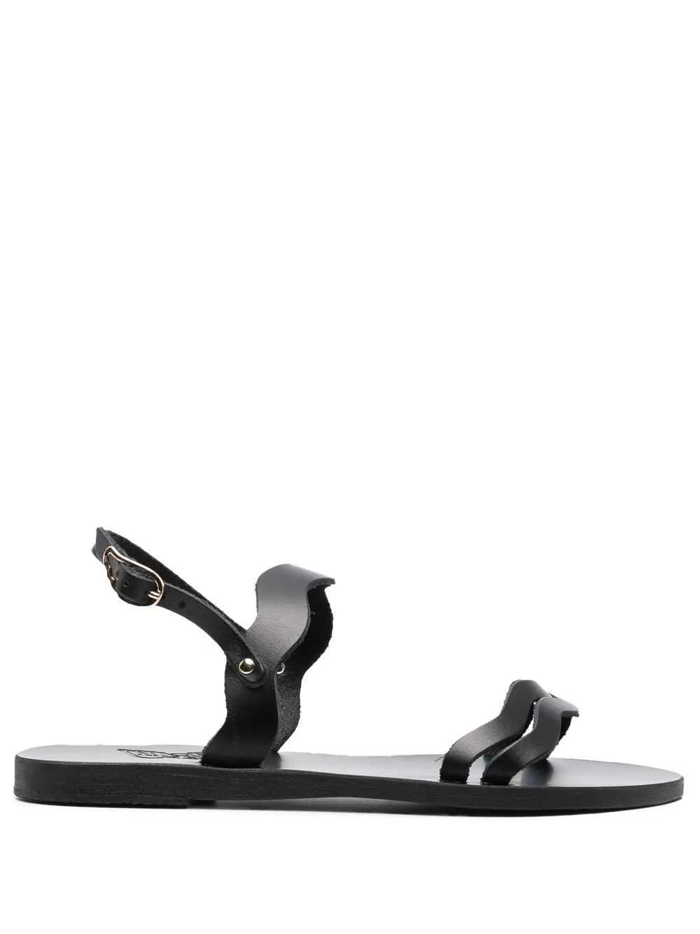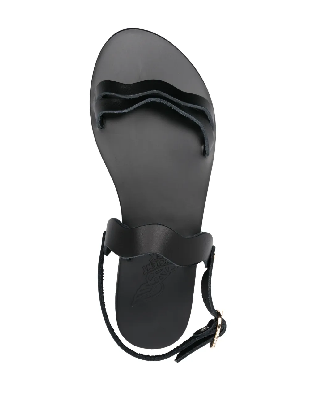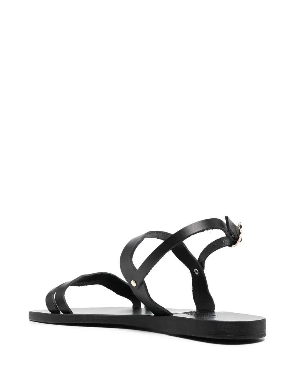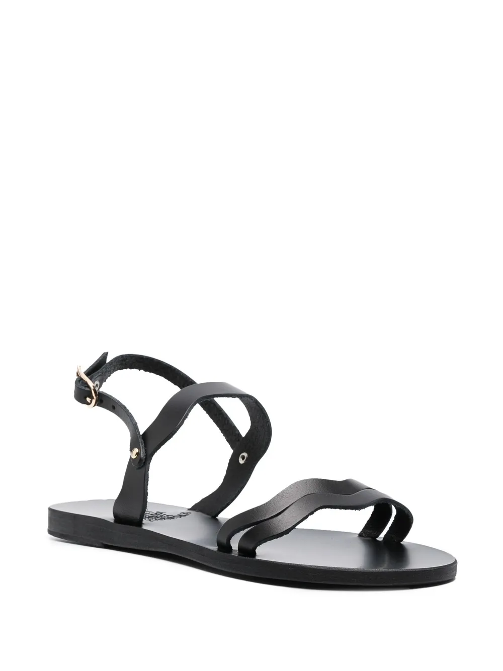 Chania multi-strap sandals from ANCIENT GREEK SANDALS featuring black, calf leather, patent finish, multi-way strap design, round toe, buckle-fastening ankle strap, branded footbed and flat sole.