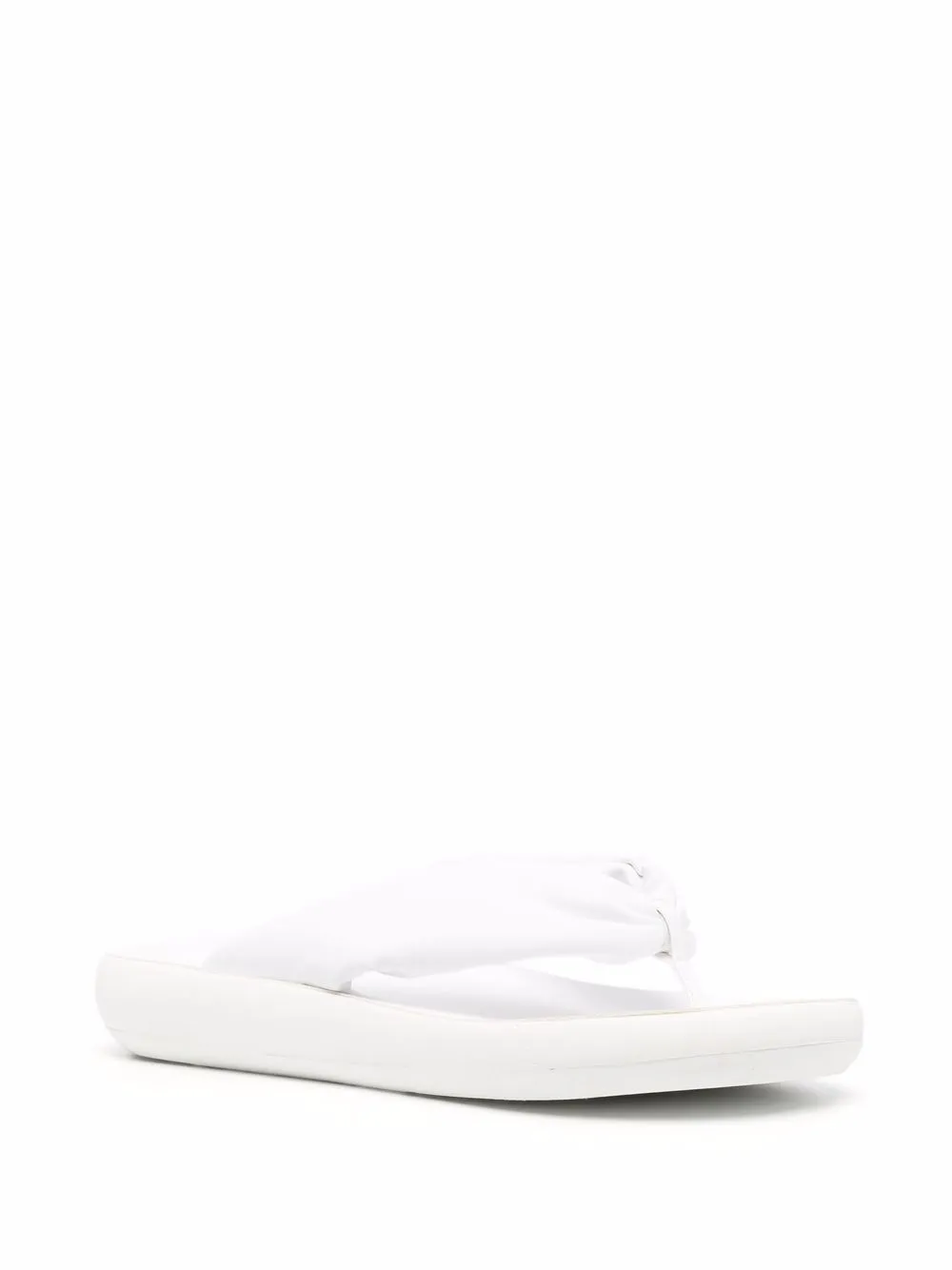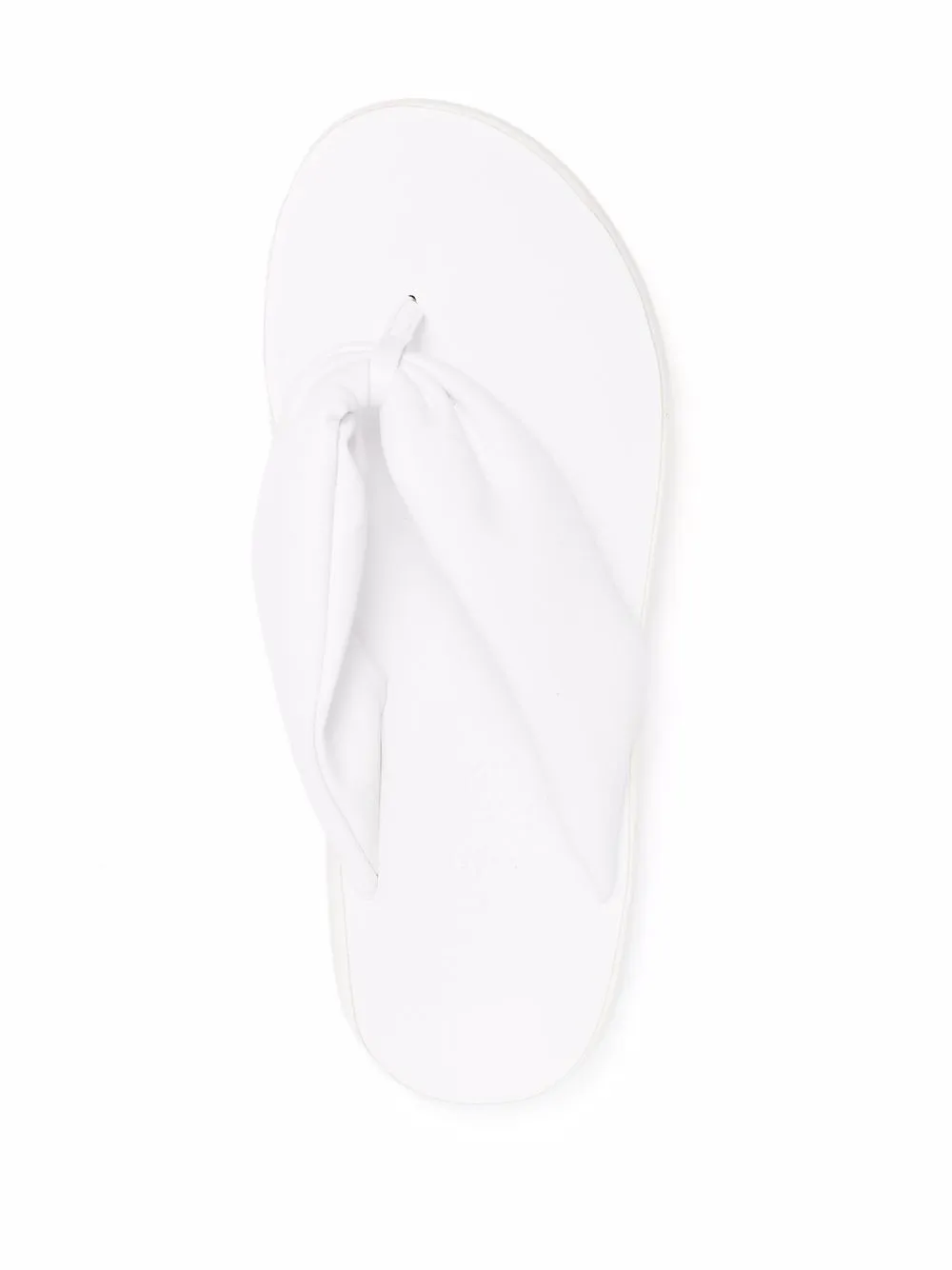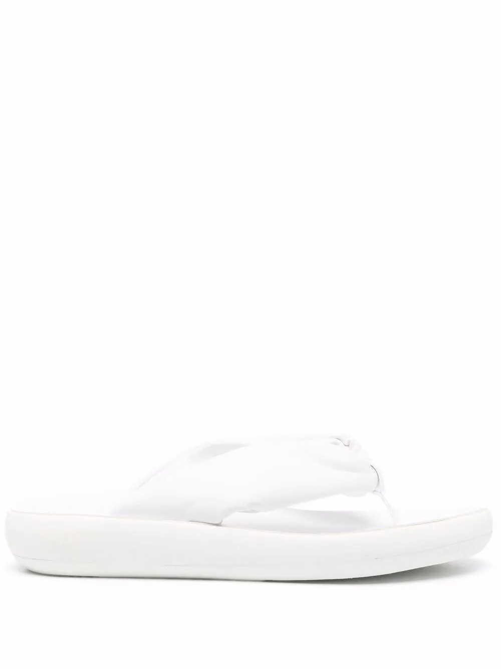 White leather Charisma sandals from ANCIENT GREEK SANDALS featuring thong strap, branded insole and flat rubber sole. POSITIVELY CONSCIOUS: We’ve partnered with Good On You — an ethical agency that rates how sustainably brands perform across various people, planet and animal welfare criteria. This product comes from a Conscious brand that performs well in relation to their impact on people, which ensures good working conditions in the supply chain..