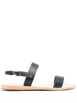Clio leather sandals from ANCIENT GREEK SANDALS featuring navy blue, calf leather, leather lining, double-strap design, open toe, buckle-fastening ankle strap and flat rubber sole. Conscious: We’ve partnered with Good On You – an ethical agency that rates how sustainably brands perform. This item comes from a brand that performs well in relation to their impact on people, which ensures good working conditions in the supply chain..