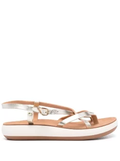 crossover-strap leather sandals from ANCIENT GREEK SANDALS featuring gold-tone, calf leather, crossover strap detail, open toe, branded insole, buckle-fastening ankle strap and low wedge heel. Conscious: We’ve partnered with Good On You – an ethical agency that rates how sustainably brands perform. This item comes from a brand that performs well in relation to their impact on people, which ensures good working conditions in the supply chain..