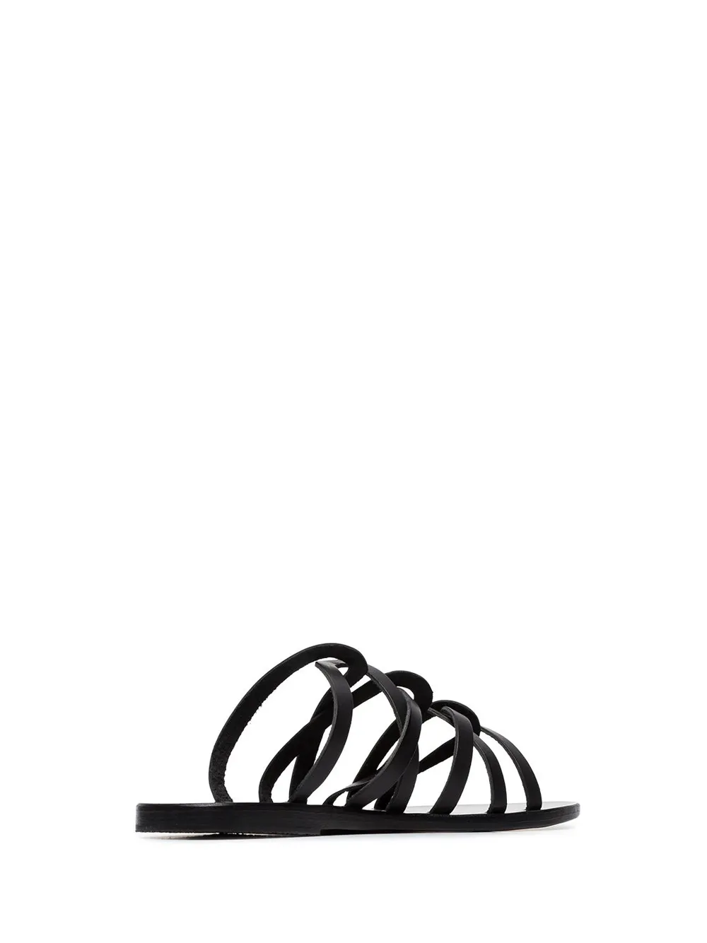 Hermes had his shoes crafted on the island of Crete, and the sandal maker embellished them with the messenger god’s ‘golden wings’ signature. Hence the shoe making tradition of the island began, and continues to be an inspiration for Ancient Greek Sandals, whose love of mythology is evident in each collection. These black Donousa multistrap leather sandals from Ancient Greek Sandals feature a slip-on style, an open toe and a flat rubber sole. POSITIVELY CONSCIOUS: Ancient Greek Sandals scores 3 out 5 by independent ethical brand rating agency Good On You. It manufactures locally to reduce its carbon footprint, uses low impact non-toxic dyes and visits suppliers regularly in its supply chain.