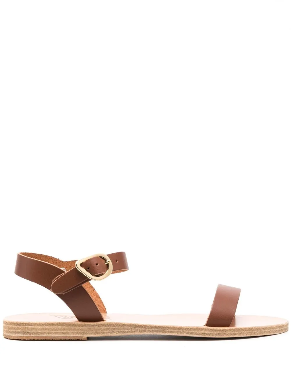 Drama leather sandals from ANCIENT GREEK SANDALS featuring light brown, calf leather, branded insole, open toe, single toe strap, buckle-fastening ankle strap and flat sole. Conscious: We’ve partnered with Good On You – an ethical agency that rates how sustainably brands perform. This item comes from a brand that performs well in relation to their impact on people, which ensures good working conditions in the supply chain..