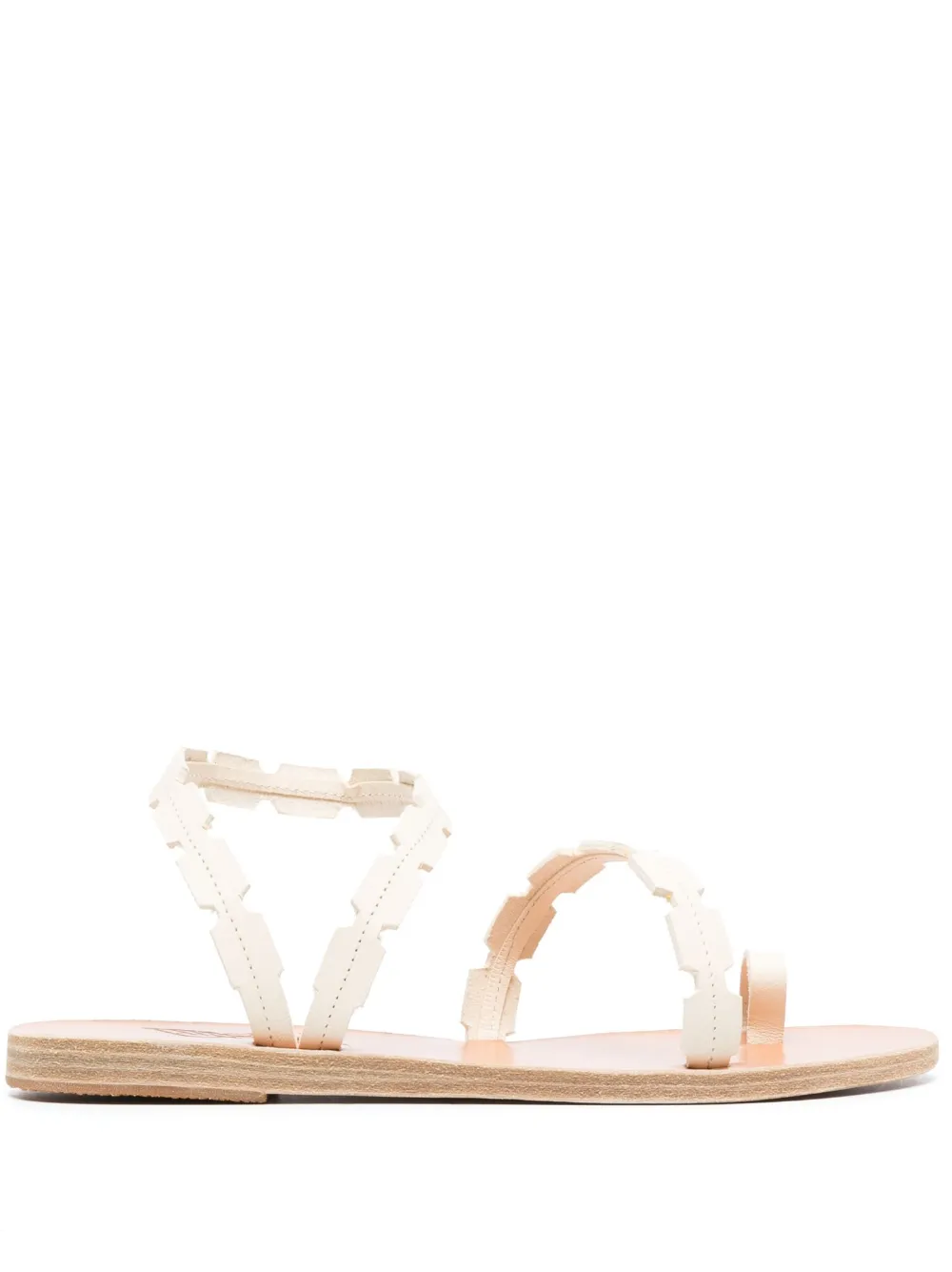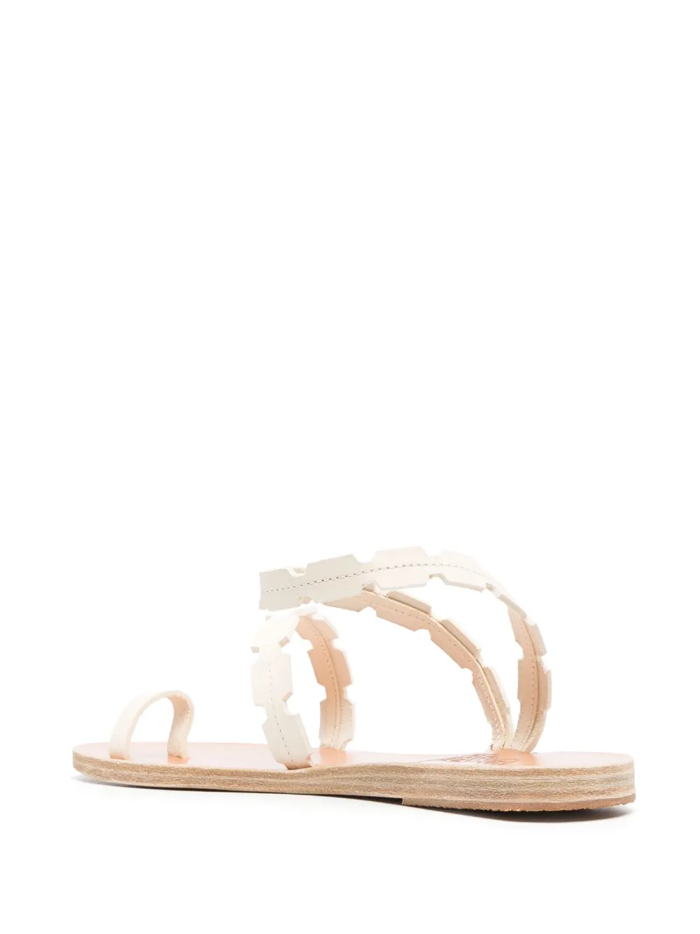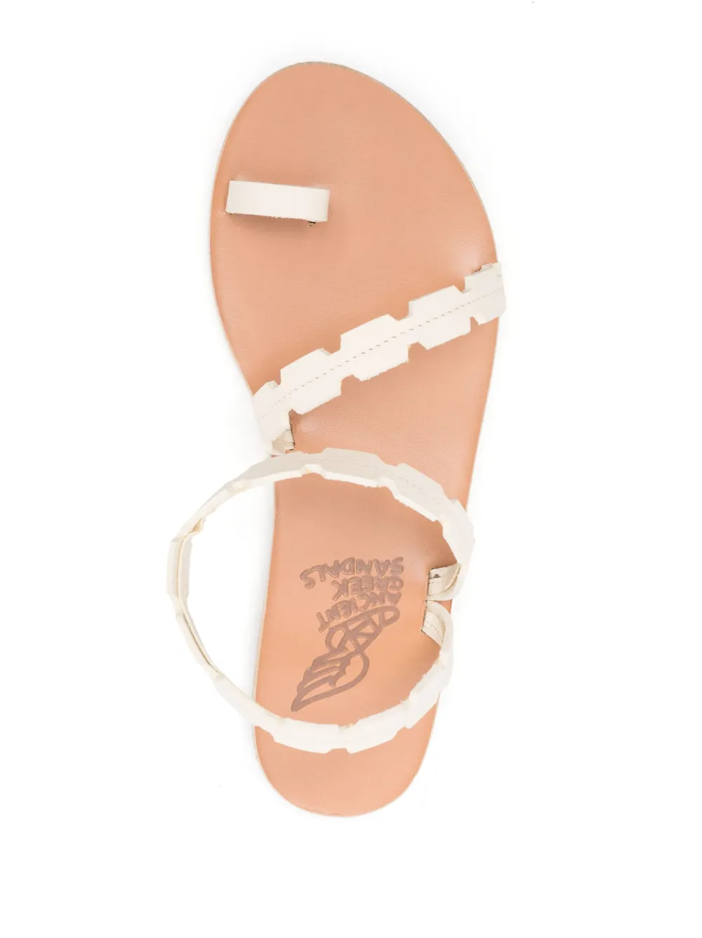 Ele open-toe sandals from ANCIENT GREEK SANDALS featuring off-white, calf leather, single toe strap, open toe, slip-on style, branded footbed and flat rubber sole.