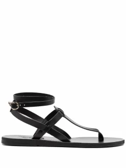 Black calf leather Estia leather sandals from Ancient Greek Sandals featuring single toe strap, multi-way strap design and buckle-fastening ankle strap. POSITIVELY CONSCIOUS: We’ve partnered with Good On You — an ethical agency that rates how sustainably brands perform across various people, planet and animal welfare criteria. This product comes from a Conscious brand that performs well in relation to their impact on people, which ensures good working conditions in the supply chain..