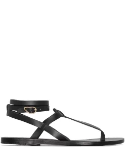 Hermes had his shoes crafted on the island of Crete, and the sandal maker embellished them with the messenger god’s ‘golden wings’ signature. Hence the shoemaking tradition of the island began, and continues to be an inspiration for Ancient Greek Sandals, whose love of mythology is evident in each collection. These black leather Estia strappy sandals from Ancient Greek Sandals feature an ankle strap with a side buckle fastening, a thong strap and an open toe. POSITIVELY CONSCIOUS: Ancient Greek Sandals scores 3 out 5 by independent ethical brand rating agency Good On You. It manufactures locally to reduce its carbon footprint, uses low impact non-toxic dyes and visits suppliers regularly in its supply chain.