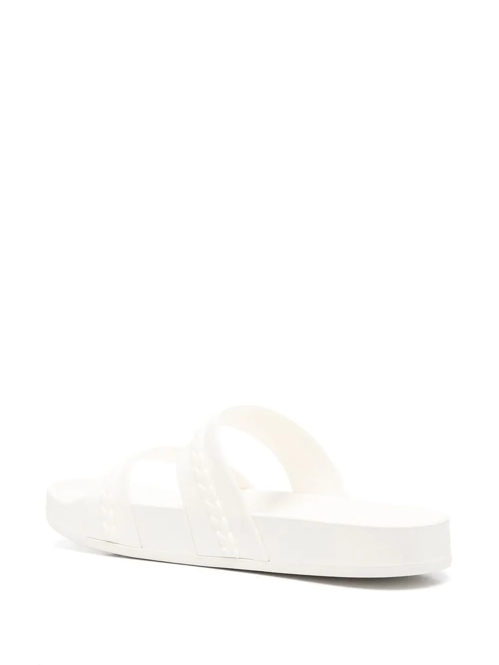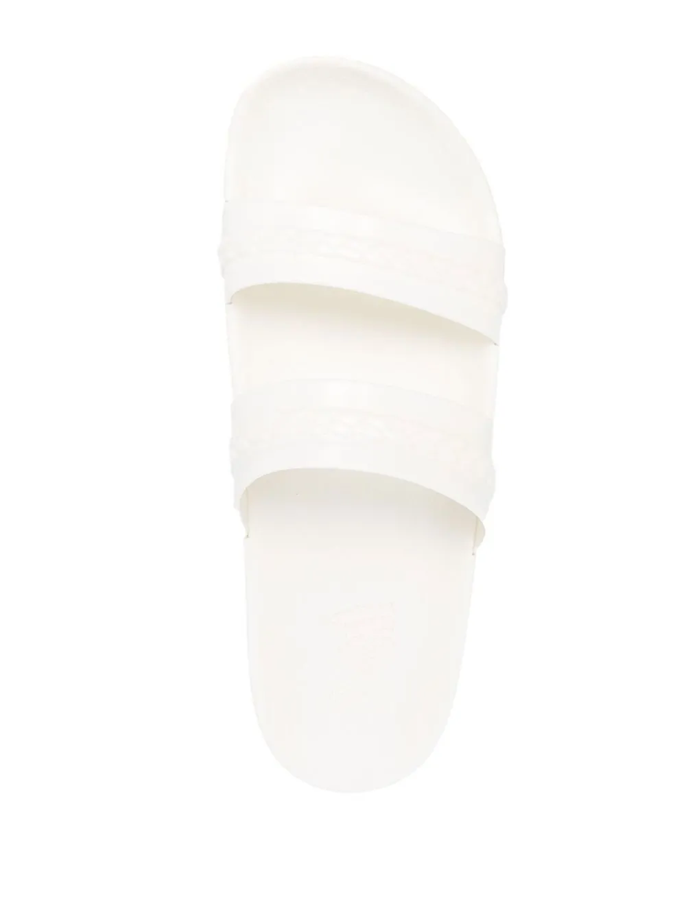 Meli double-strap slides from ANCIENT GREEK SANDALS featuring off-white, double-strap design, open toe, slip-on style, branded insole and chunky rubber sole. POSITIVELY CONSCIOUS: We’ve partnered with Good On You — an ethical agency that rates how sustainably brands perform across various people, planet and animal welfare criteria. This product comes from a Conscious brand that performs well in relation to their impact on people, which ensures good working conditions in the supply chain..