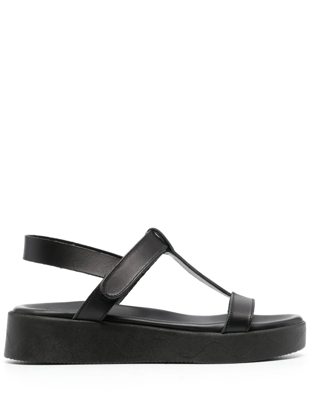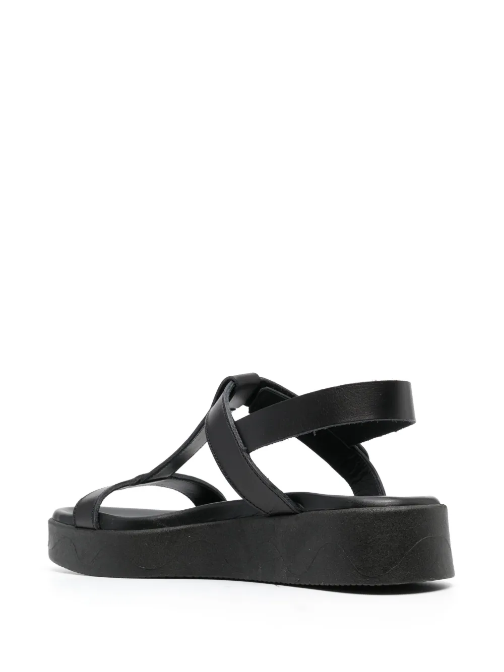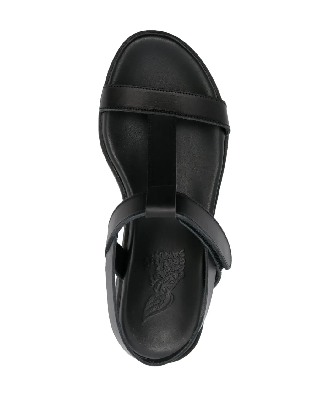 Myrto open-toe sandals from ANCIENT GREEK SANDALS featuring black, calf leather, open toe, slingback strap, front touch-strap fastening, branded footbed and rubber sole.