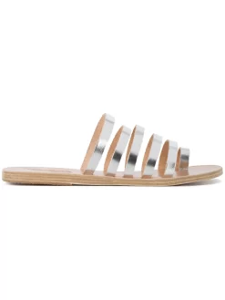 Silver leather Niki sandals from Ancient Greek Sandals. POSITIVELY CONSCIOUS: Ancient Greek Sandals scores 3 out 5 by independent ethical brand rating agency Good On You. It manufactures locally to reduce its carbon footprint, uses low impact non-toxic dyes and visits suppliers regularly in its supply chain.