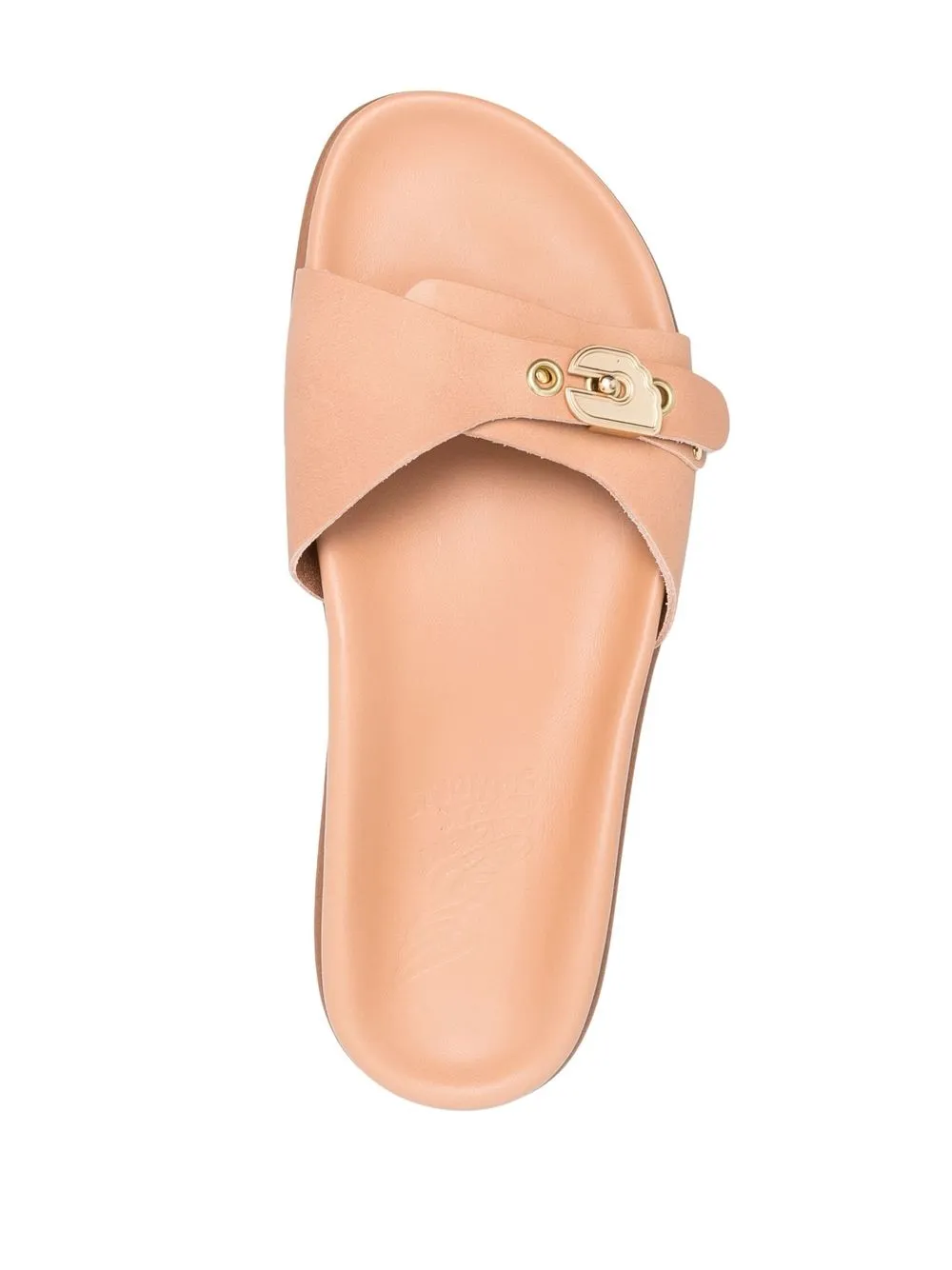 Odi buckle-fastened slides from ANCIENT GREEK SANDALS featuring side buckle fastening, open toe, flat rubber sole, beige and calf leather. Conscious: We’ve partnered with Good On You – an ethical agency that rates how sustainably brands perform. This item comes from a brand that performs well in relation to their impact on people, which ensures good working conditions in the supply chain..