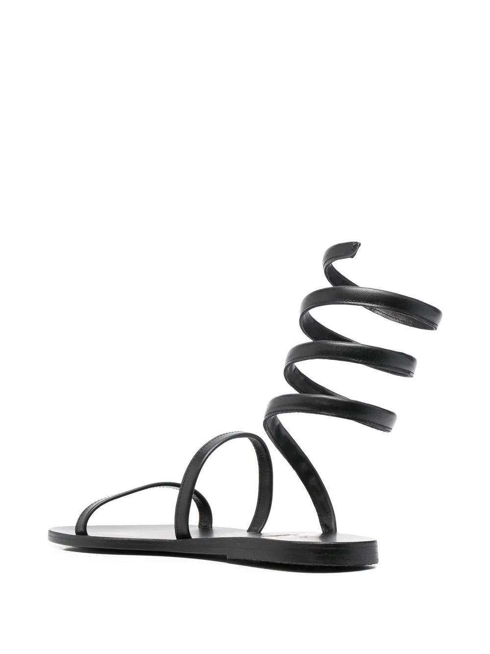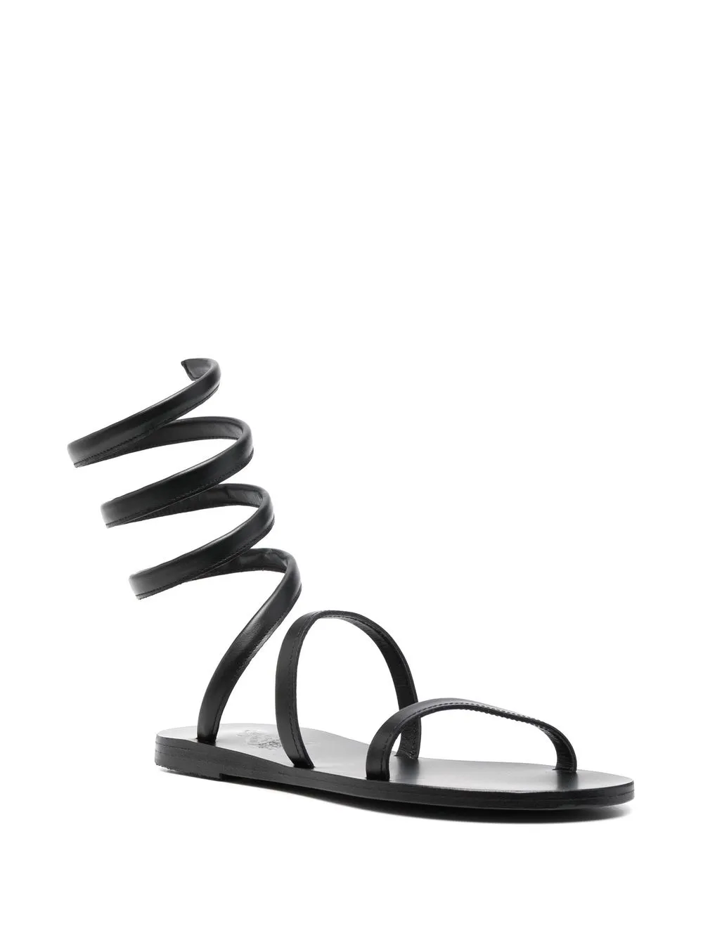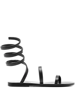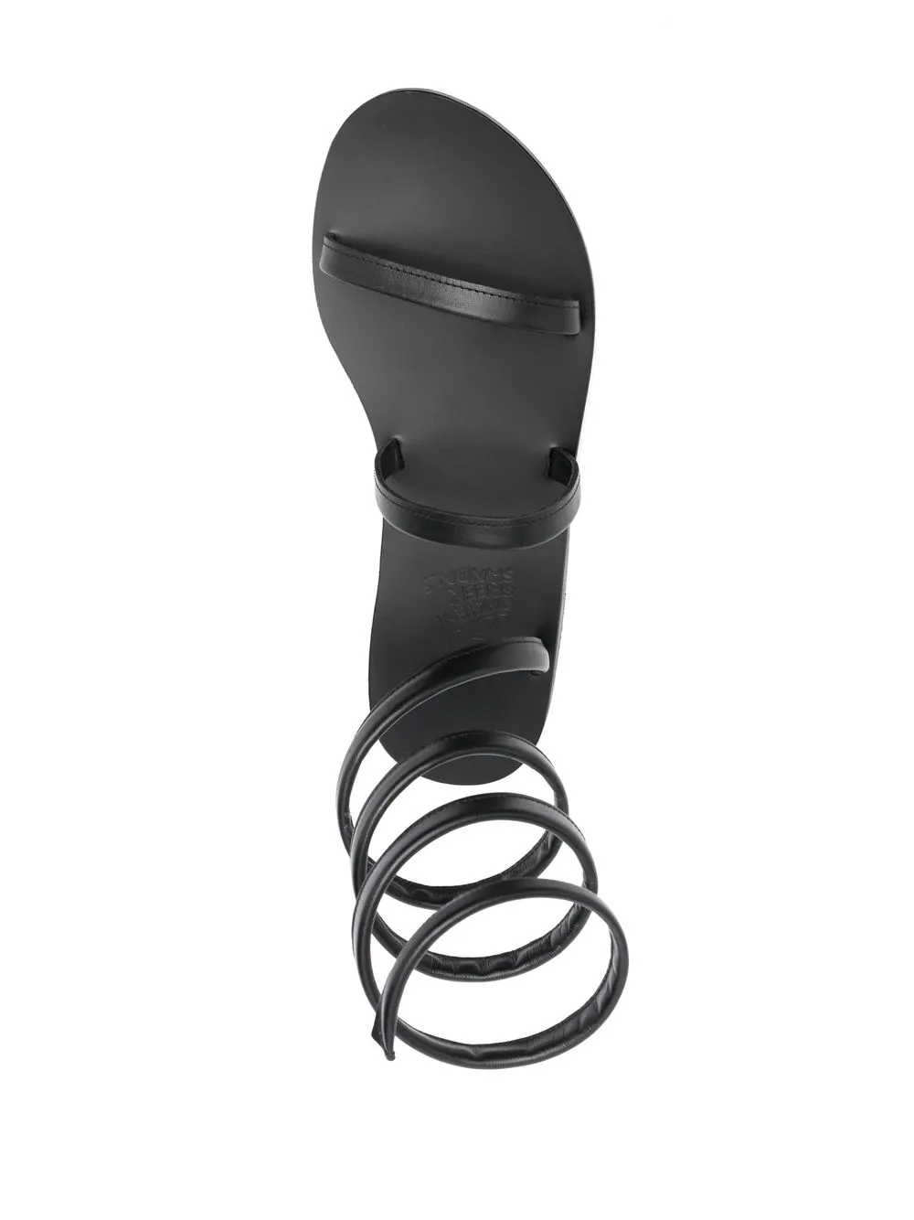 Ofis wraparound mid-calf sandals from ANCIENT GREEK SANDALS featuring jet black, calf leather, open toe, wraparound frame and flat rubber sole. Conscious: We’ve partnered with Good On You – an ethical agency that rates how sustainably brands perform. This item comes from a brand that performs well in relation to their impact on people, which ensures good working conditions in the supply chain..