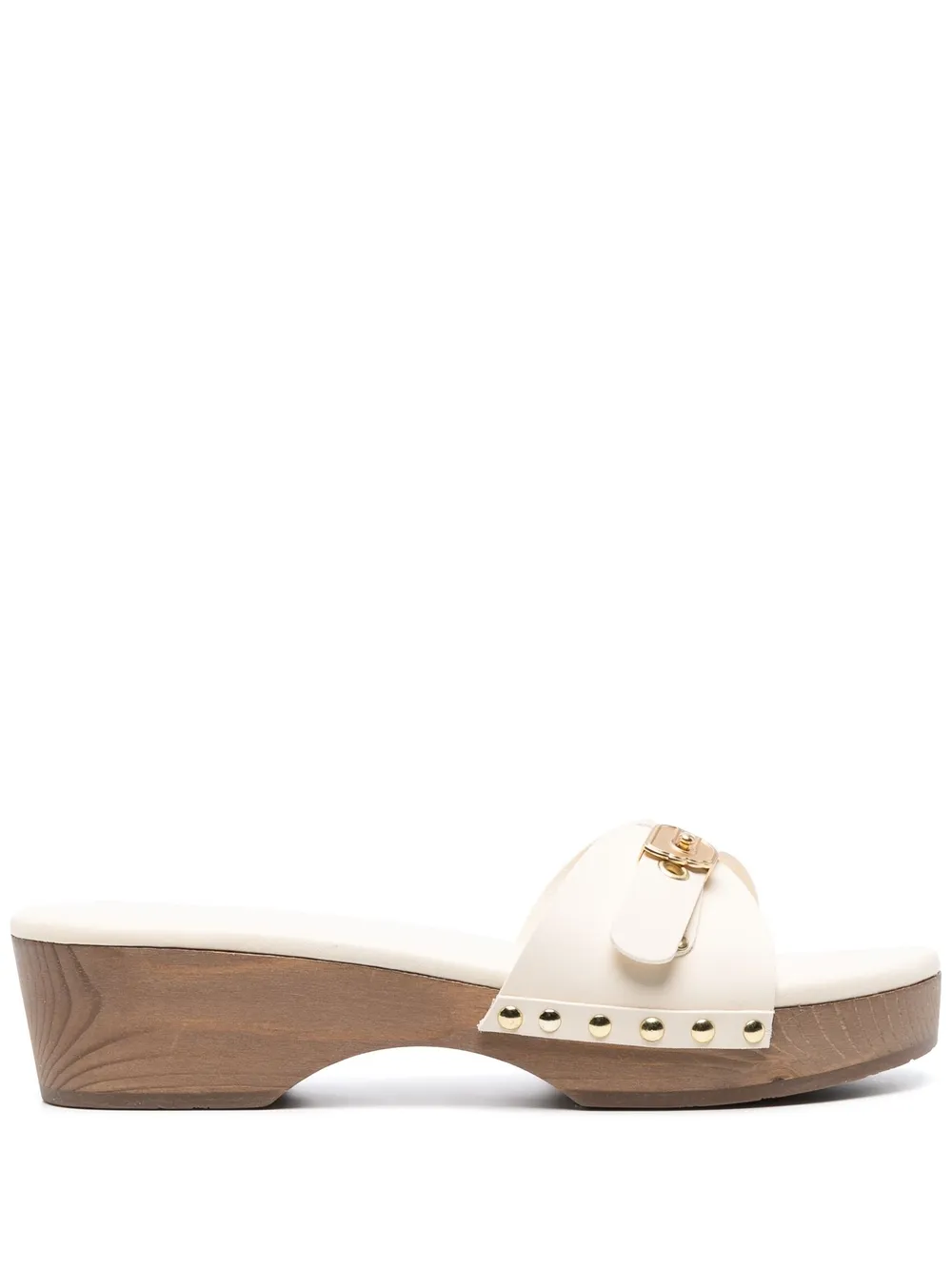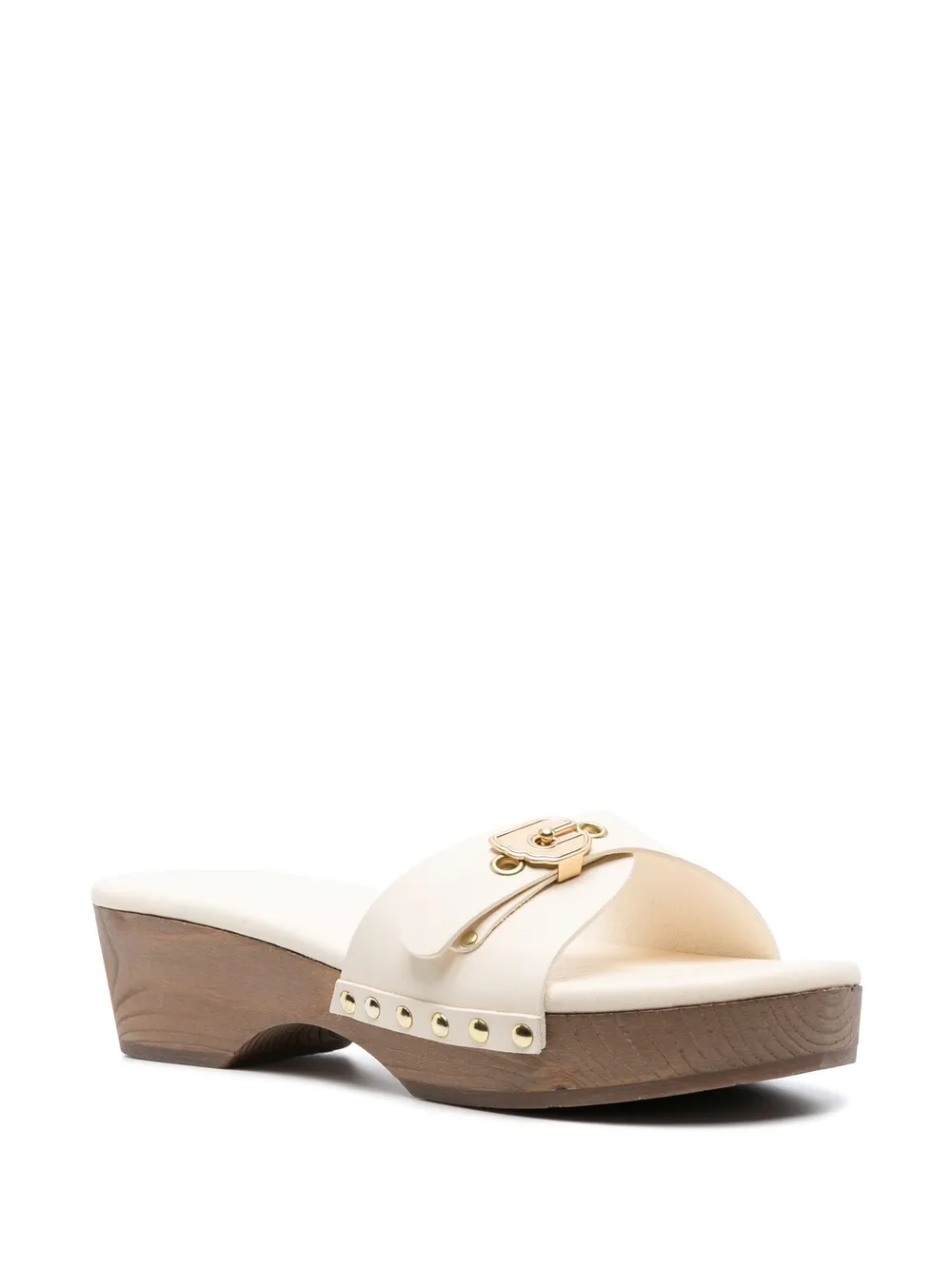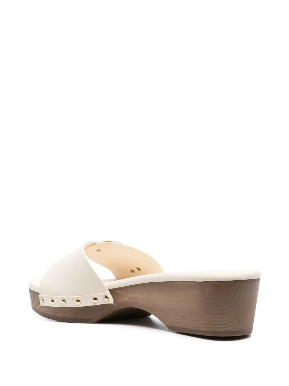 Omia leather sandals from ANCIENT GREEK SANDALS featuring off-white, calf leather, gold-tone stud detailing, single toe strap, round toe, gold-tone buckle fastening and low block heel. Conscious: We’ve partnered with Good On You – an ethical agency that rates how sustainably brands perform. This item comes from a brand that performs well in relation to their impact on people, which ensures good working conditions in the supply chain..