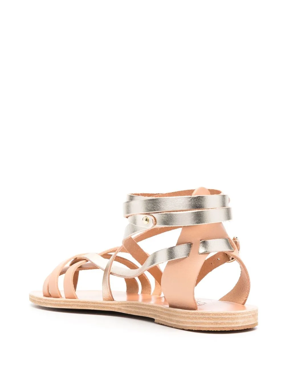 Satira ankle-strap sandals from ANCIENT GREEK SANDALS featuring salmon pink, silver-tone, calf leather, open toe, crossover strap detail, buckle-fastening ankle strap and flat rubber sole. Conscious: We’ve partnered with Good On You – an ethical agency that rates how sustainably brands perform. This item comes from a brand that performs well in relation to their impact on people, which ensures good working conditions in the supply chain..
