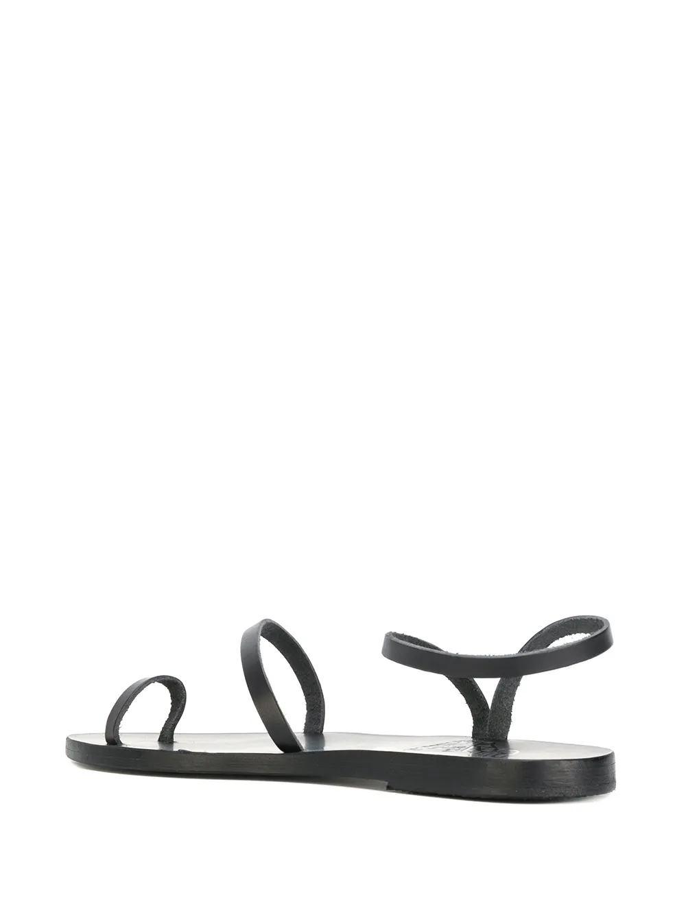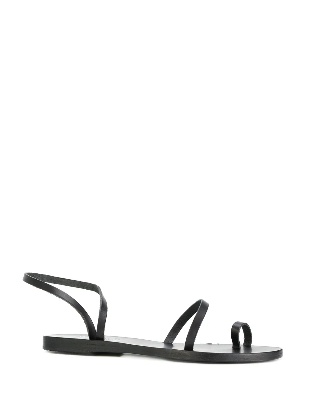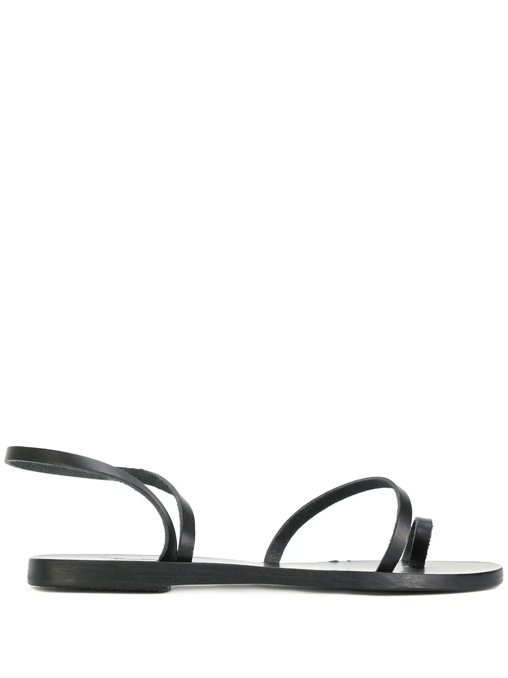 Black leather slip-on open-toe sandals from Ancient Greek Sandals. POSITIVELY CONSCIOUS: Ancient Greek Sandals scores 3 out 5 by independent ethical brand rating agency Good On You. It manufactures locally to reduce its carbon footprint, uses low impact non-toxic dyes and visits suppliers regularly in its supply chain.