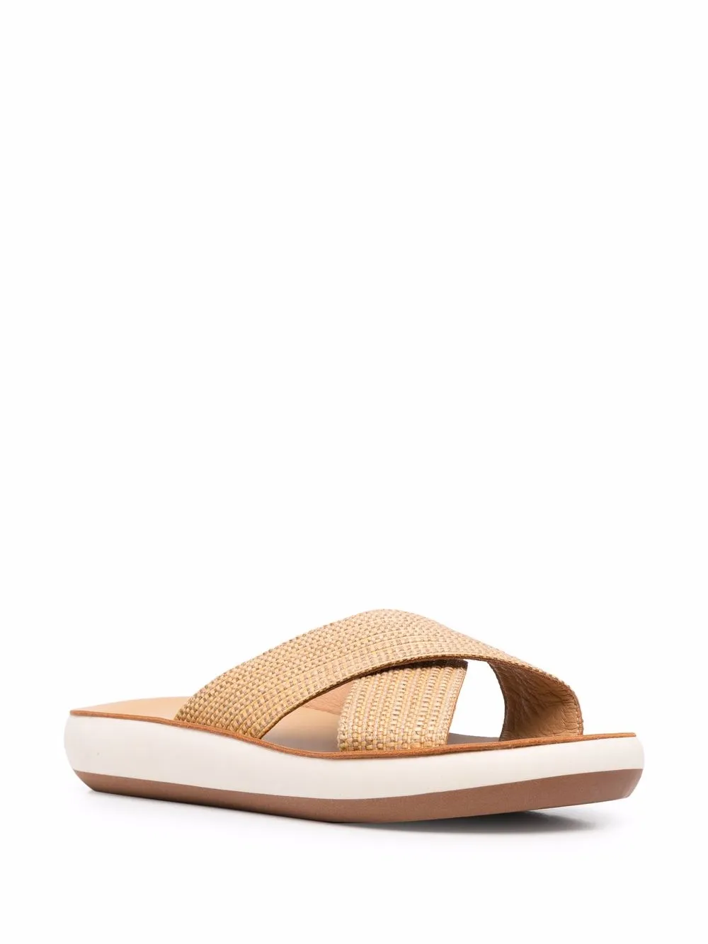 Neutral leather blend Thais Comfort Sandals from ANCIENT GREEK SANDALS featuring crossover strap detail, open toe, slip-on style and low wedge heel. POSITIVELY CONSCIOUS: We’ve partnered with Good On You — an ethical agency that rates how sustainably brands perform across various people, planet and animal welfare criteria. This product comes from a Conscious brand that performs well in relation to their impact on people, which ensures good working conditions in the supply chain..