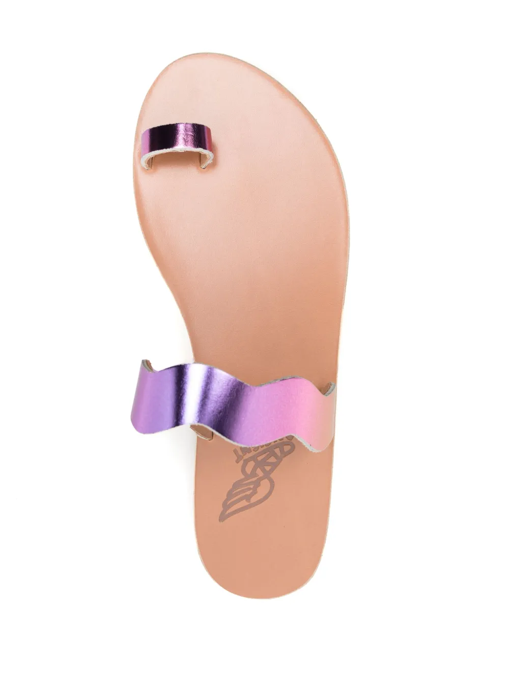 Thasos slip-on sandals from ANCIENT GREEK SANDALS featuring purple, calf leather, single toe strap, open toe, slip-on style, branded footbed and flat leather sole.