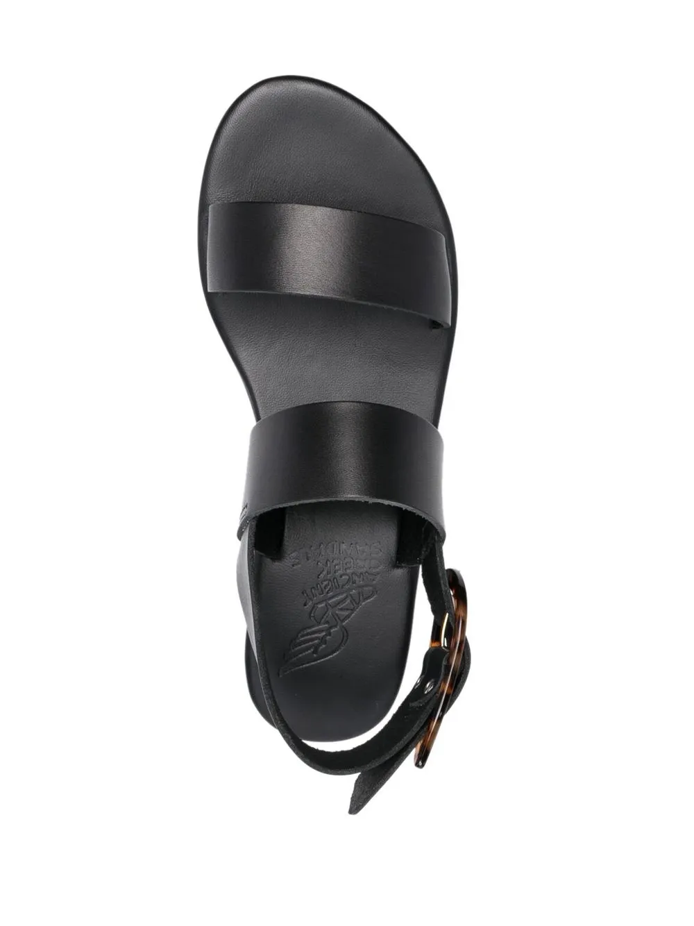 wedged double-strap sandals from ANCIENT GREEK SANDALS featuring black, calf leather, double-strap design, buckle-fastening ankle strap, open toe and low wedge heel. Conscious: We’ve partnered with Good On You – an ethical agency that rates how sustainably brands perform. This item comes from a brand that performs well in relation to their impact on people, which ensures good working conditions in the supply chain..