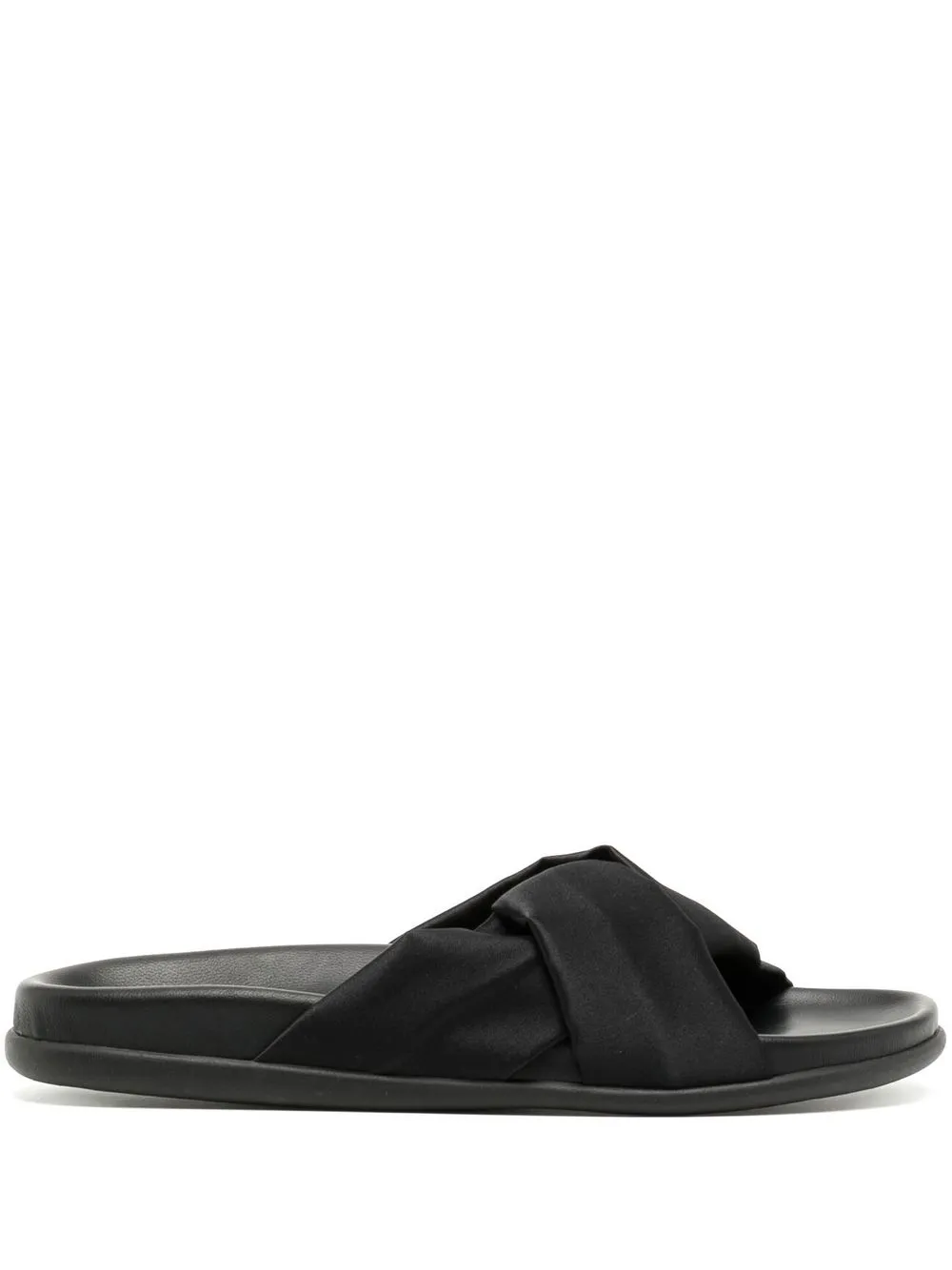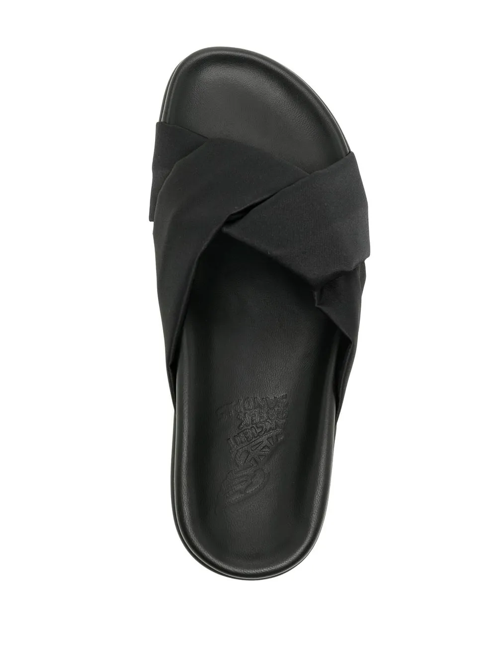 Whitney flat-sole sandals from ANCIENT GREEK SANDALS featuring black, leather, crossover strap detail, open toe, slip-on style, branded leather insole and flat sole. Conscious: We’ve partnered with Good On You – an ethical agency that rates how sustainably brands perform. This item comes from a brand that performs well in relation to their impact on people, which ensures good working conditions in the supply chain..